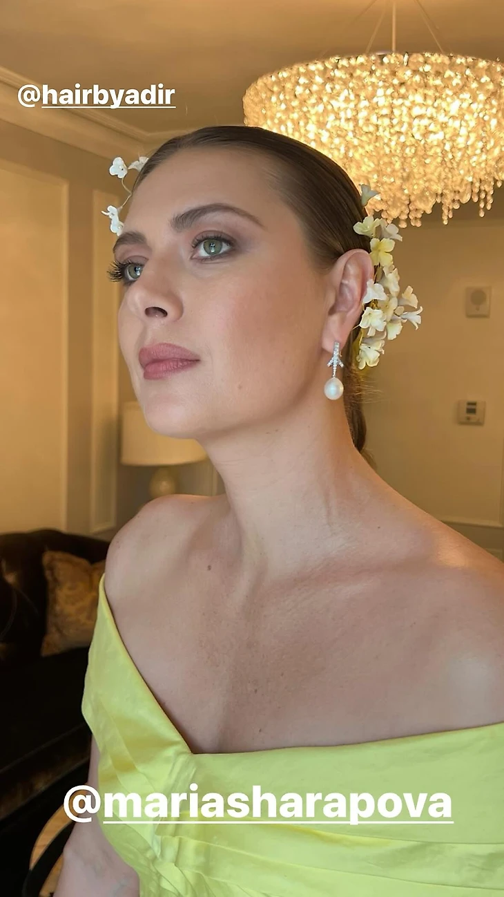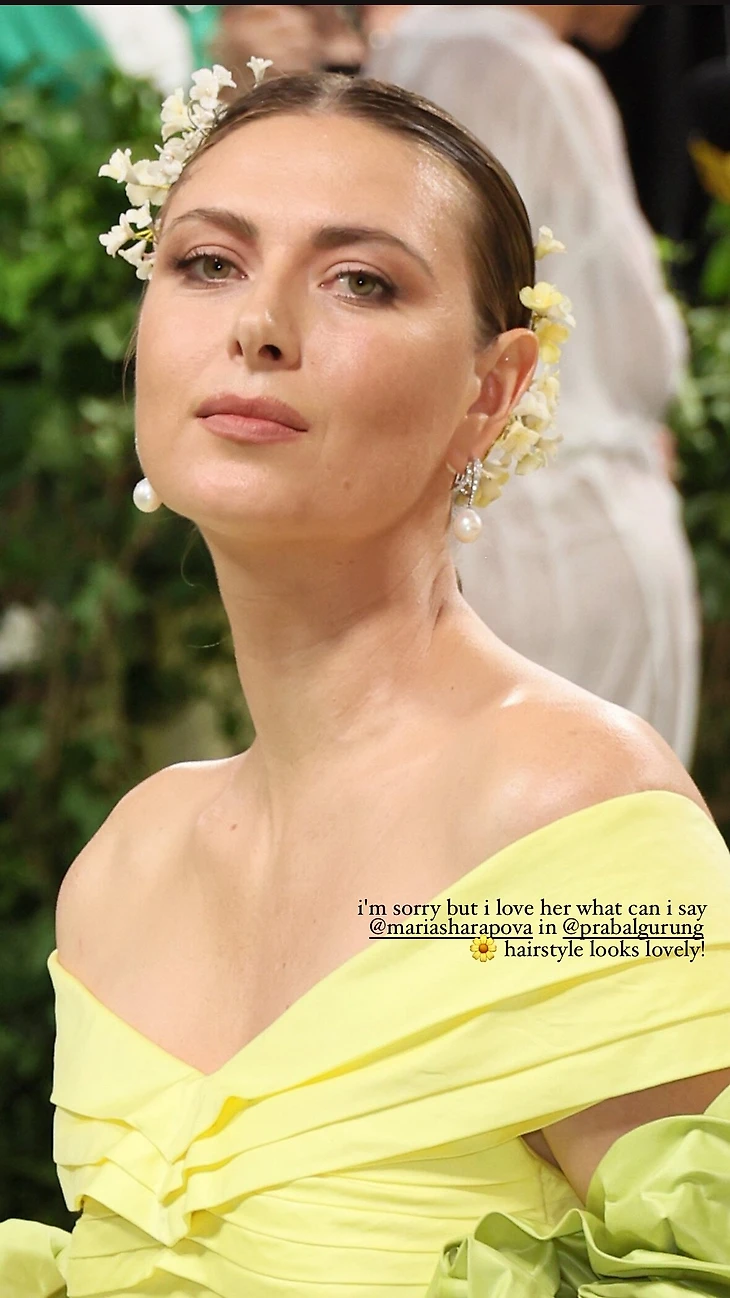 Шарапова на главной модной тусовке мира: цветочки в волосах и противоречивое платье