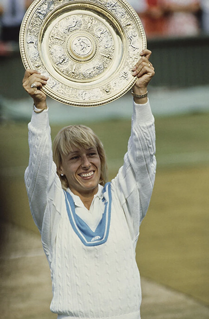 Одна из важнейших теннисисток в истории Мартина Навратилова половину «Шлемов» взяла на «Уимблдоне». Последний из них она выиграла в 1990-м во вполне обычные по нынешним меркам 33 года, зато другой возрастной рекорд ей принадлежит: на «Уимблдоне»-2004 (выигранном 17-летней Шараповой) Навратилова в 47 лет и 8 месяцев стала самой возрастной теннисисткой, побеждавшей в профессиональном матче в Открытой эре.