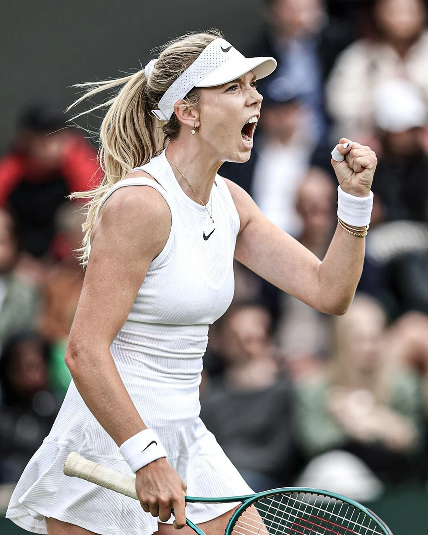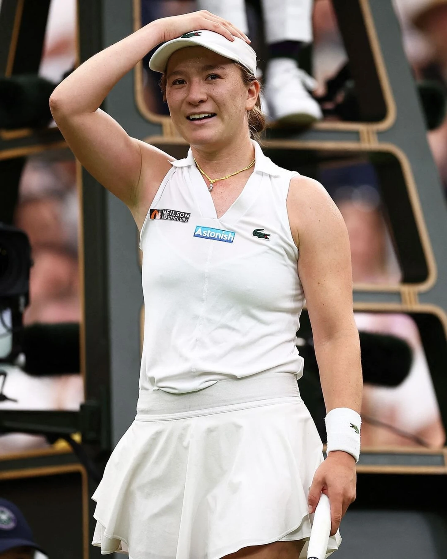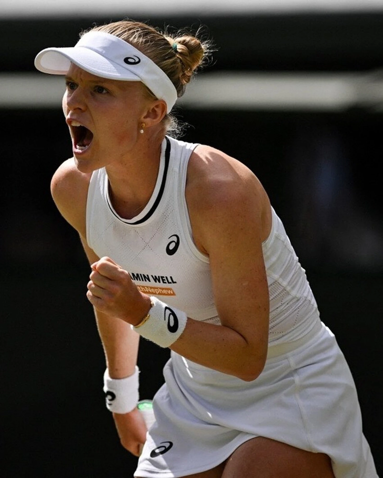 «Уимблдон» одно время так сильно зафиксировался на тотальной белизне формы, что воевал даже с логотипами – и экипировщиков, и особенно третьих сторон. Сейчас ограничения, очевидно, смягчили – что подтверждает Хэрриет Дарт, впервые за пять лет дошедшая до третьего круга «Шлема»: