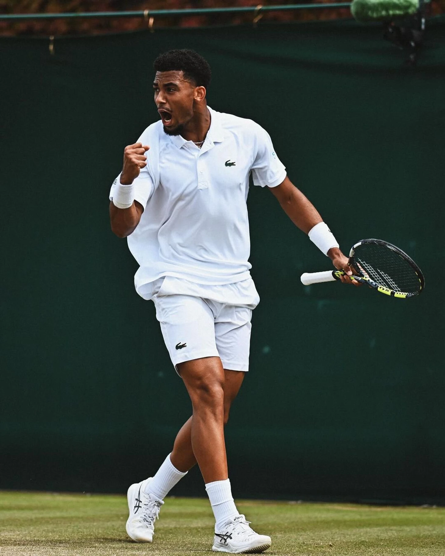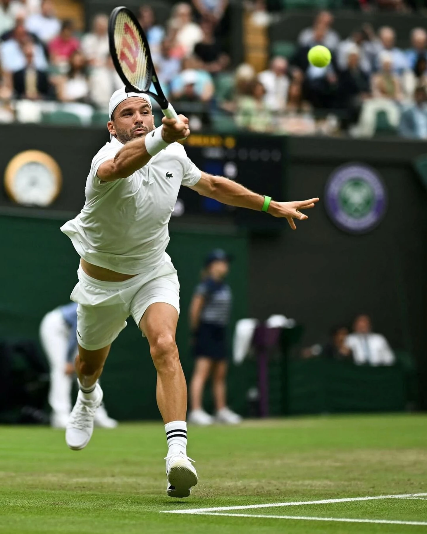 Так же органично смотрятся комплекты Lacoste, чье теннисное происхождение будто бы особенно считывается на «Уимблдоне», – на Новаке Джоковиче, Григоре Димитрове и Артуре Фисе, впервые вышедшем во вторую неделю «Шлема».