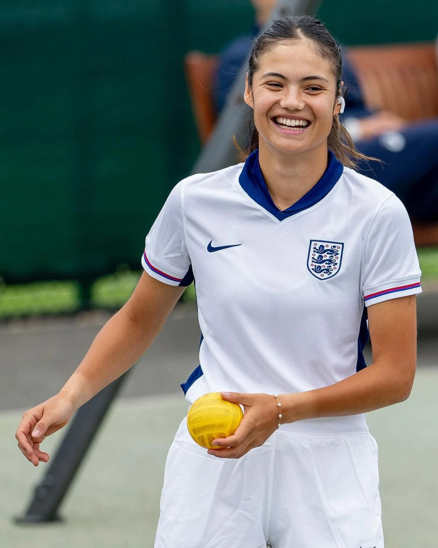Обычно на тренировки на территории Всеанглийского клуба (в отличие от парка Аоранги) распространяется тот же белый дресс-код, что и на матчи, но Эмму Радукану, похоже, из ее футболки сборной Англии по футболу переодеваться не заставили.