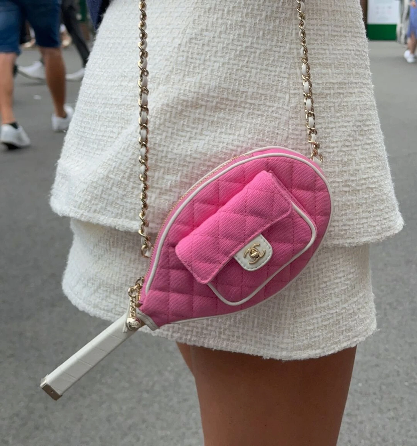 К слову, девушка Пола Пэйдж Лоренце, активно использующая декорации теннисных турниров для развития своего лайфстайл-бренда, приурочила к «Уимблдону» дебютный релиз одежды. В нем твидовое мини-платье «Матч» ($110), которое Лоренце стилизовала тряпочной сумкой Chanel в виде ракетки ($6000-7000 на ресейле).