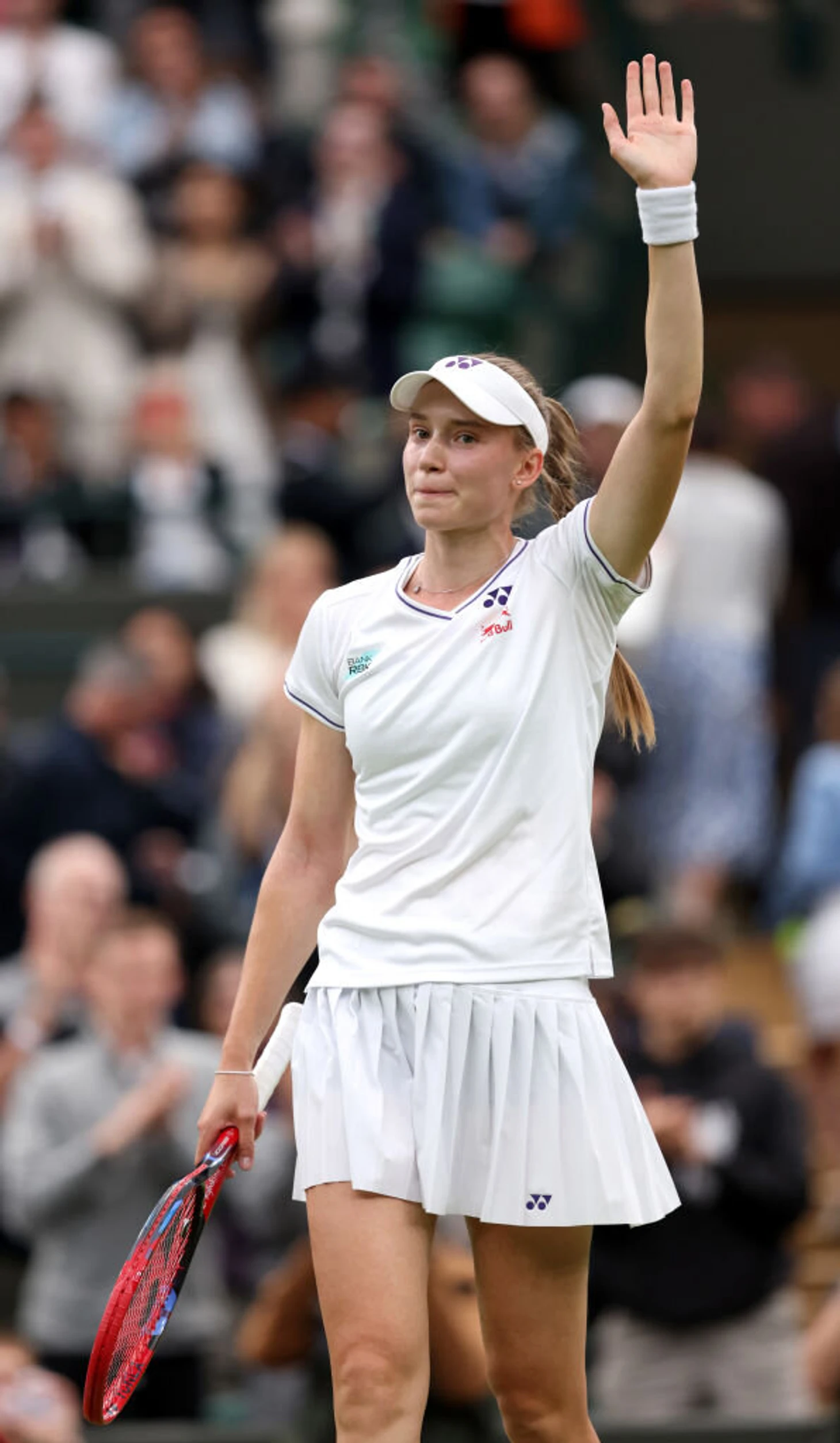 Топы с рукавами на матчах – почти исключительно мужская форма, но в этот раз в футболке играет чемпионка-2022 Елена Рыбакина (Yonex)