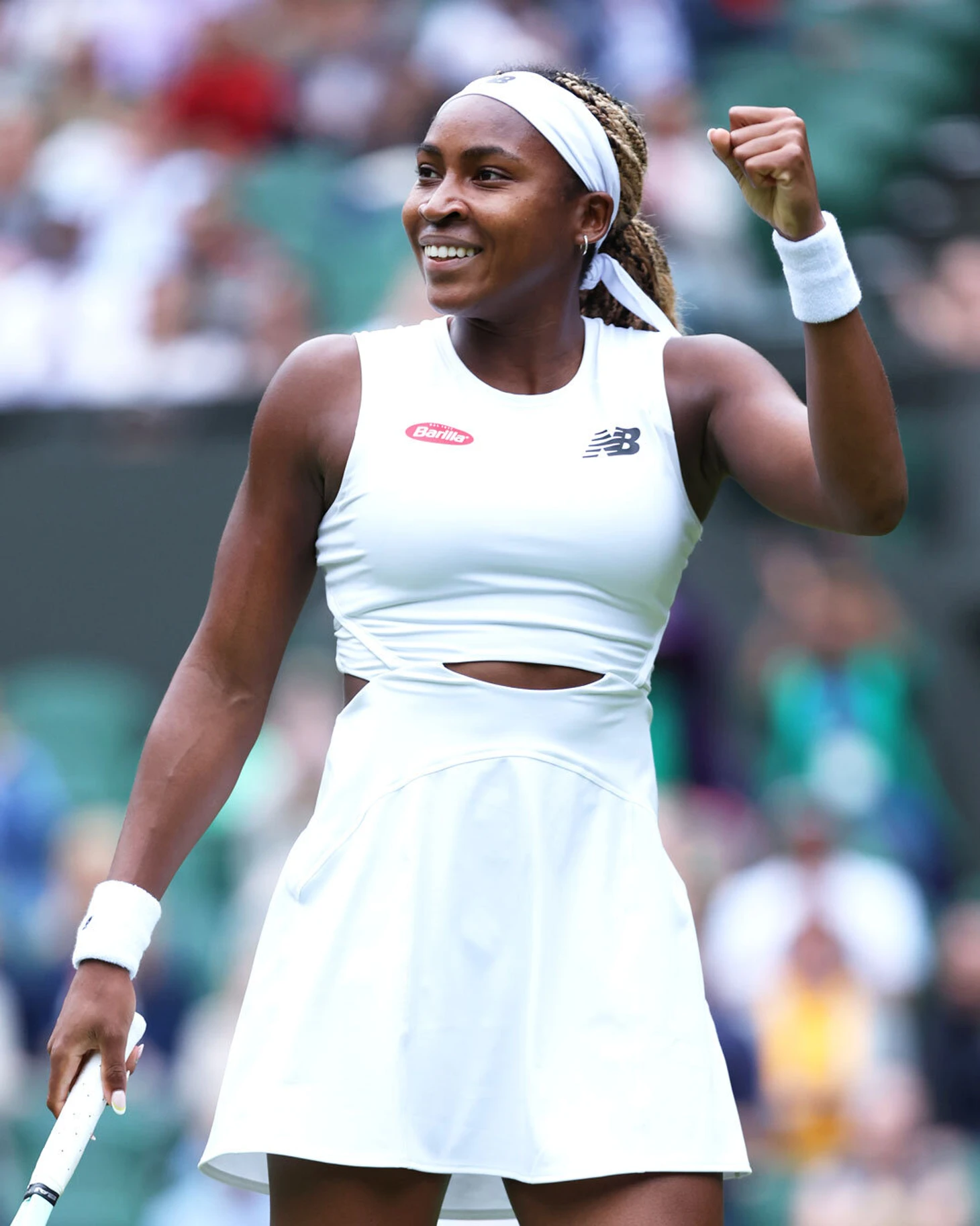 В индивидуальных дизайнах New Balance играет чемпионка US Open Коко Гауфф, перед «Уимблдоном» рассказавшая, что ее шлемовые наряды планируются на год-два вперед, а также что ее новая прическа – оммаж Уиллоу Смит, певице и дочери Уилла Смита.