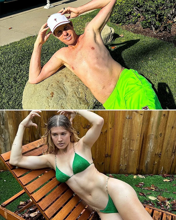Бывший теннисист предстал в зеленых шортах и в точности повторил фотосессию девушки, оставив сообщение для журнала Sports Illustrated, на страницах которого неоднократно появлялась Бушар: «Жду вашего звонка».