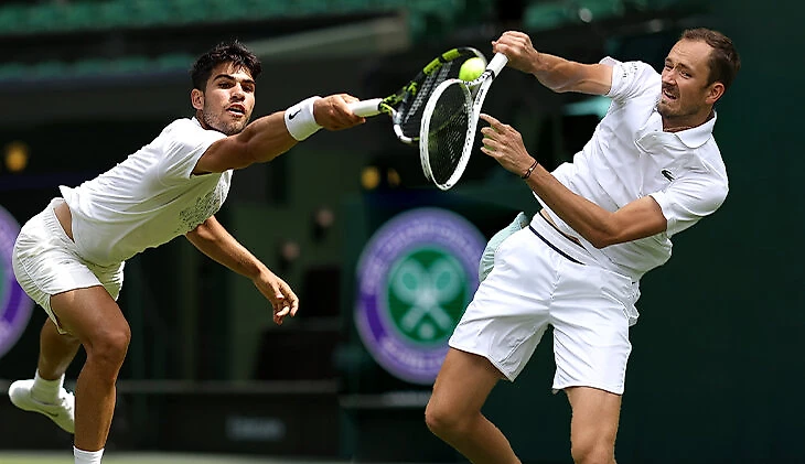 В полуфинале «Уимблдона» Даниил Медведев второй год подряд проиграл Карлосу Алькарасу.