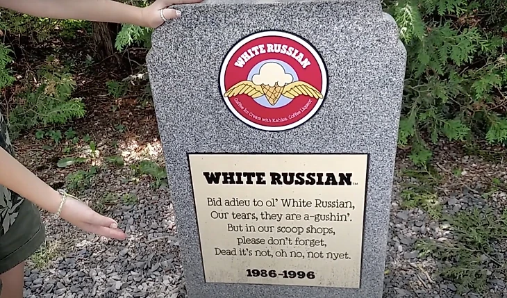 К тому времени пик популярности «Белого русского» уже миновал – он пришелся на 1970-е, когда, по выражению исследовательницы Николь Диджиоз, его пили «и алкоголики, и начинающие». В 1986-м, впрочем, мороженое со вкусом White Russian (с кофейным ликером, без водки) выпустила компания Ben&Jerry’s; сорт просуществовал десять лет, прежде чем отправиться на «кладбище вкусов» рядом с фабрикой бренда в штате Вермонт. В 2010-е сорт ненадолго возродили, а также запустили похожий, From Russia With Buzz.
