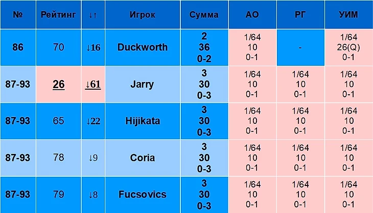 Jarry на 61 место НИЖЕ своего рейтинга от 19.08.2024 года. И он Шлемы не пропускал! Худший результат по динамике в топ-100!