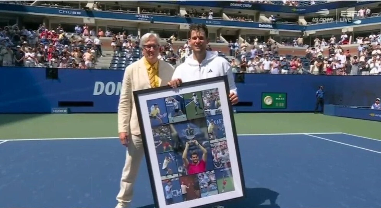 Организаторы оформили все красиво – после матча обоим подарили большие коллажи с их лучшими фотографиями с US Open.