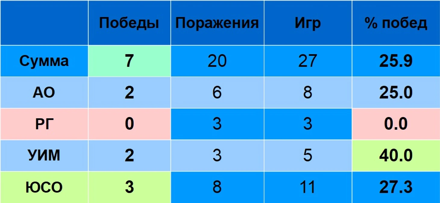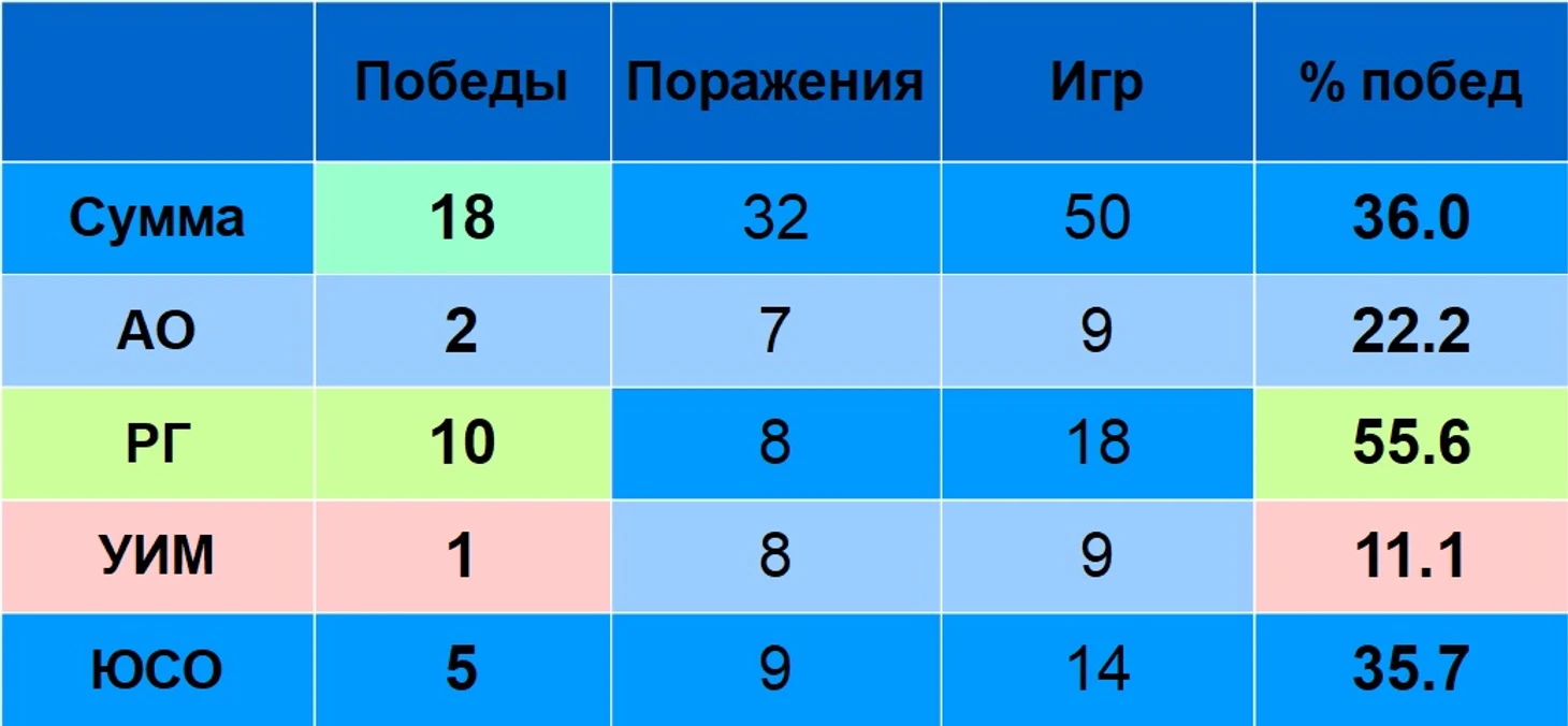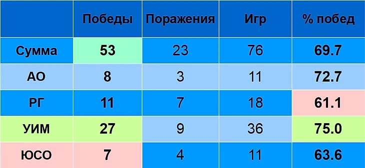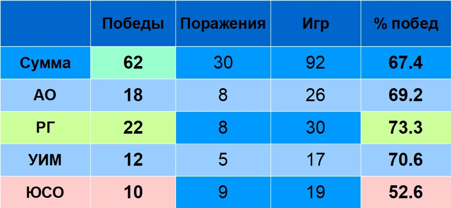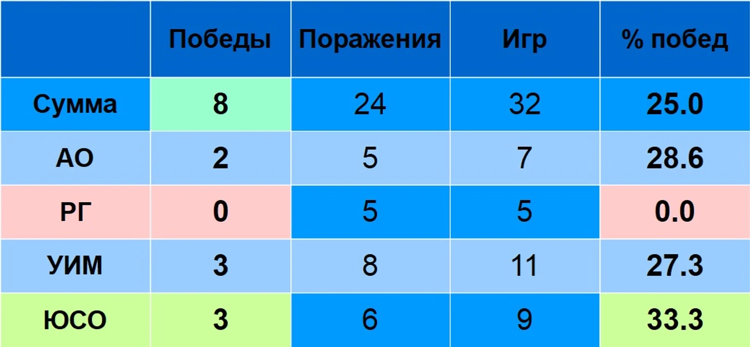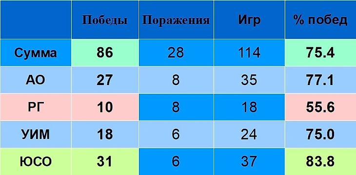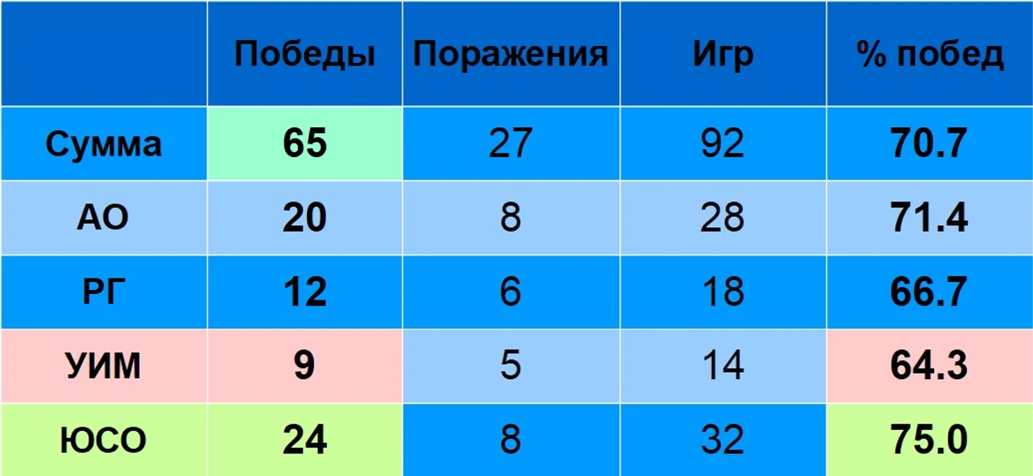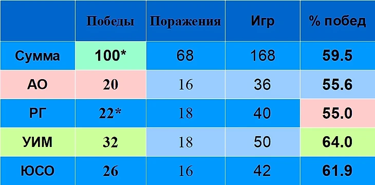 Актуально на 31 августа! С учетом выхода в 4-ый круг ЮСО-2024. Три победы на ЮСО-2024 уже засчитал.