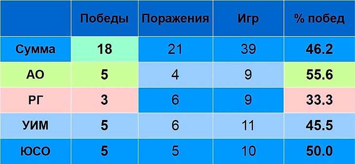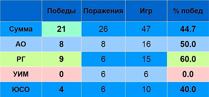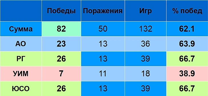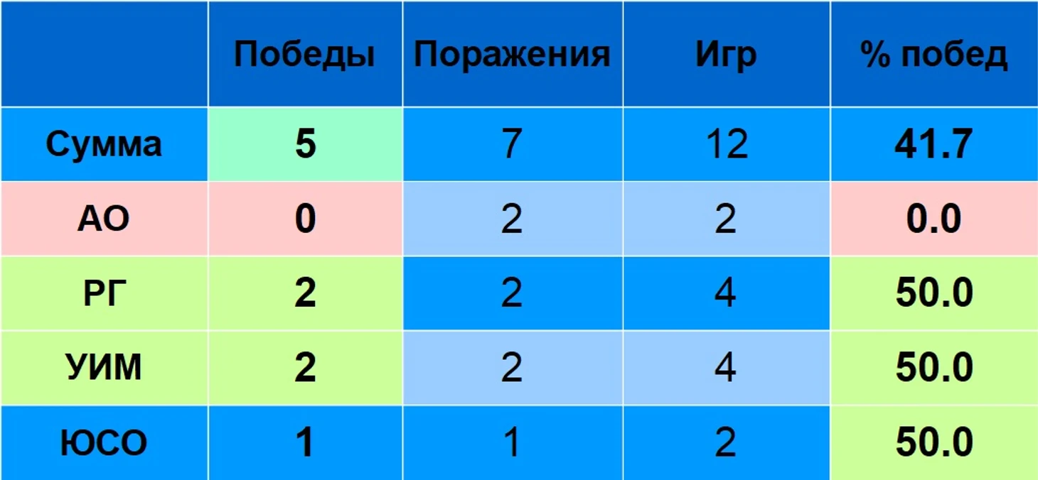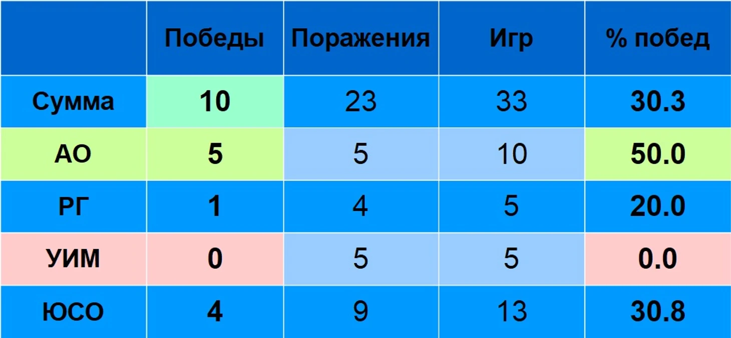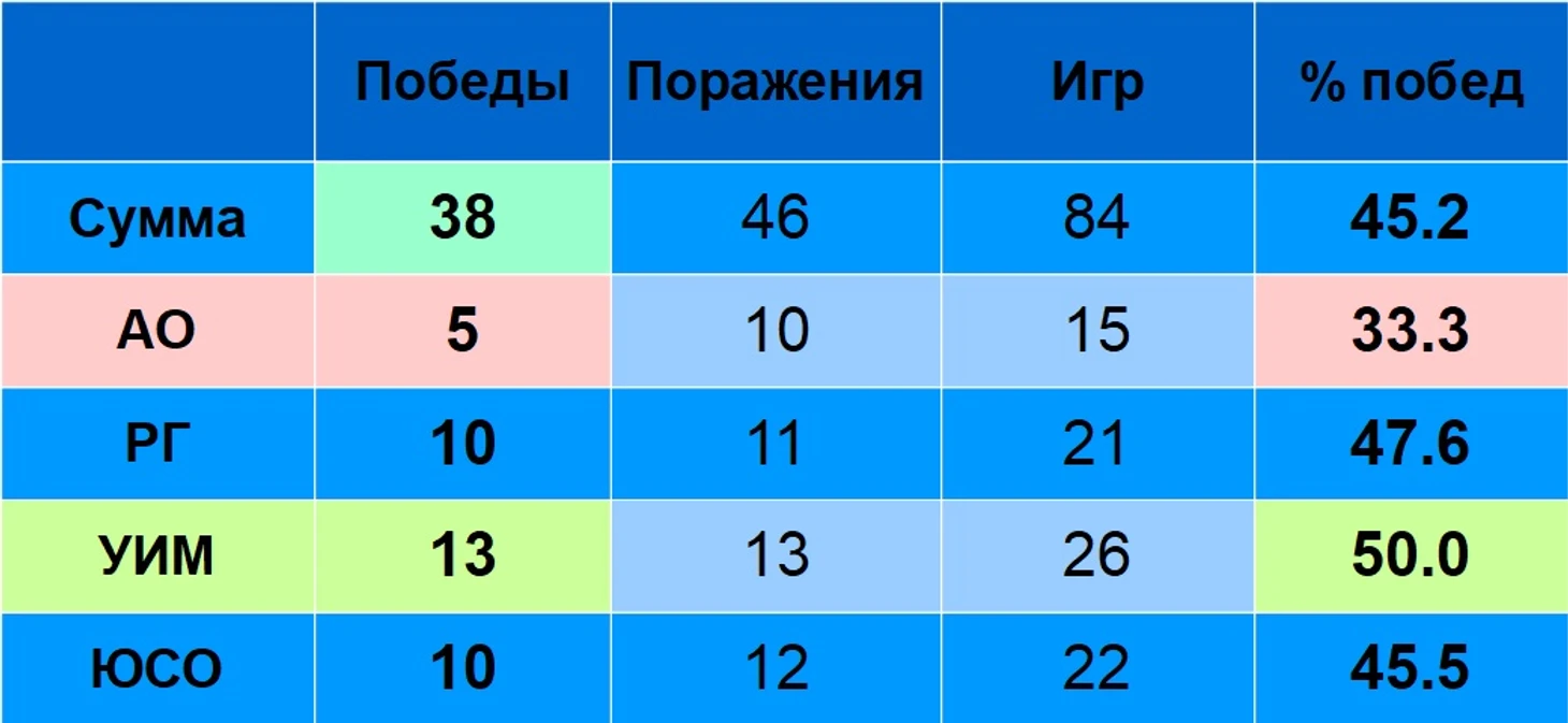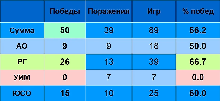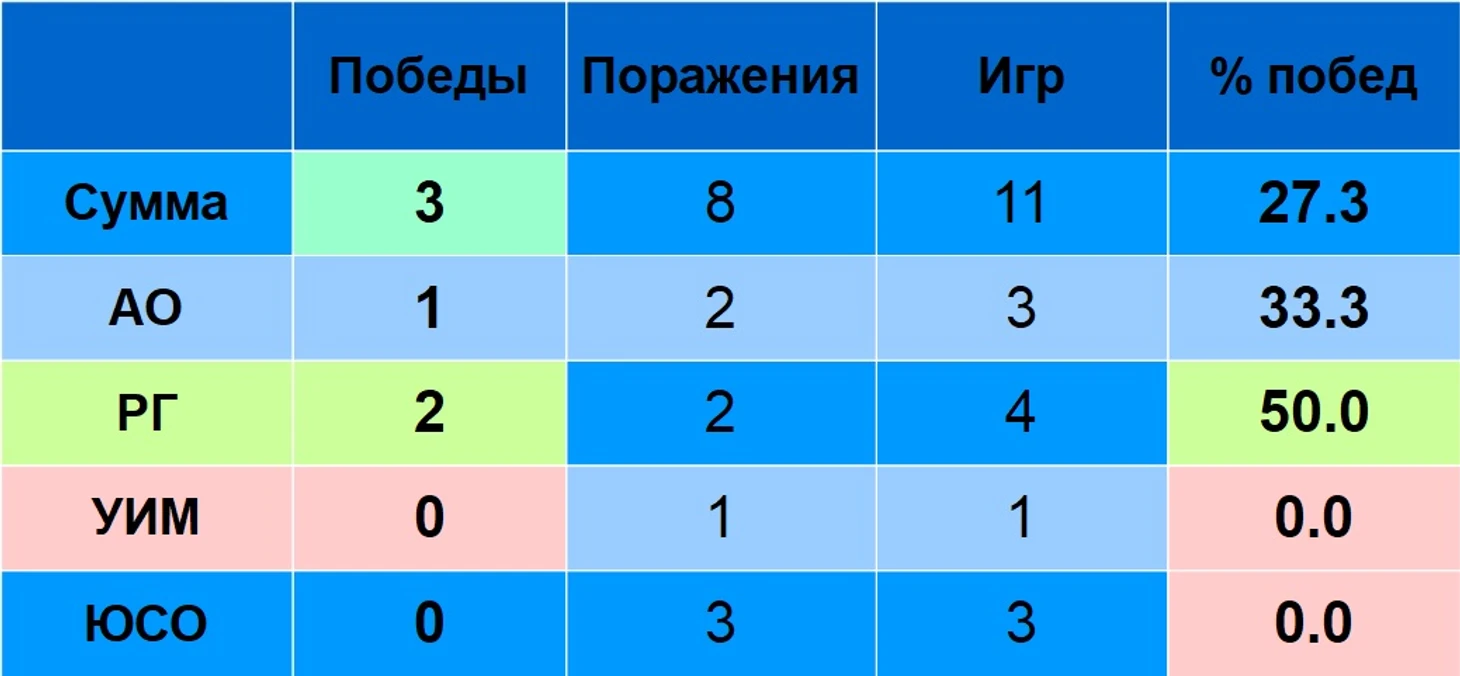Актуально на 31 августа! С учетом выхода в 4-ый круг ЮСО-2024. Три победы на ЮСО-2024 уже засчитал.
