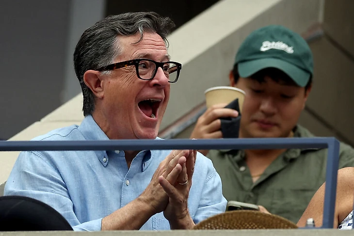 Ведущий вечернего шоу Стивен Кольбер нашел время для поездки на US Open и, похоже, не пожалел.