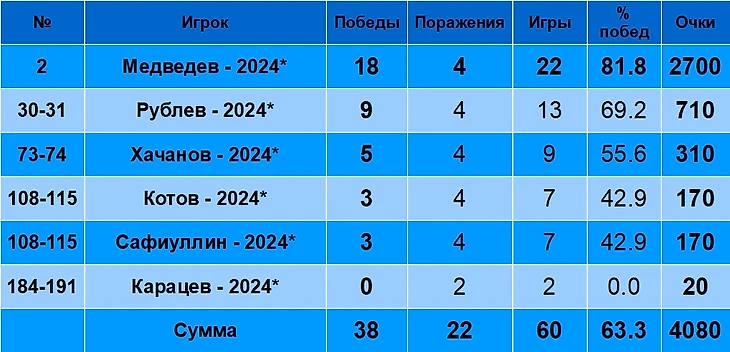 6 раз мы одерживали больше побед за год. Поэтому, 2024 был неплохой, однако, получилось далеко не все.