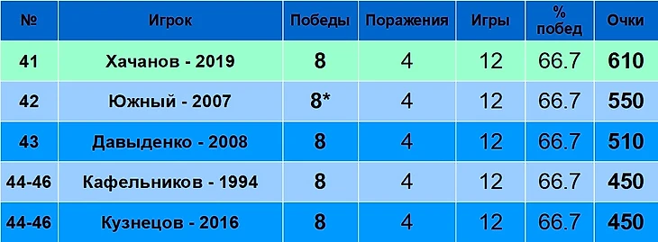 Решил составить иерархию российских игроков по числу побед на Шлемах за сезон.