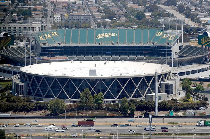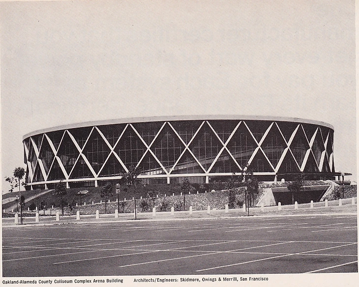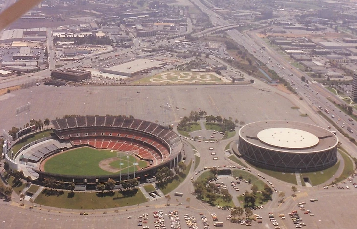 «Окленд-арена» строилась в комплексе с Оклендским колизеем, который долгие годы был местом проведения матчей по бейсболу и американскому футболу, а нынче переключился на соккер. Так открытый и крытый стадионы выглядели в августе 1986-го.