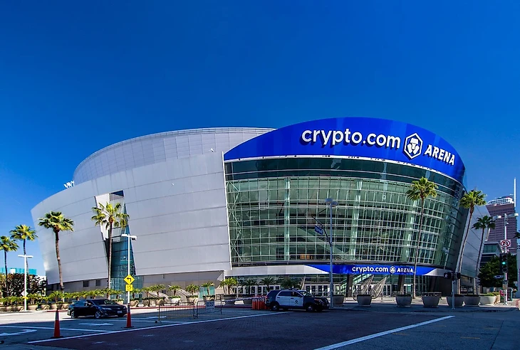 В 2021-м стадион переименовали в Crypto.com Arena. Он по-прежнему служит для проведения матчей НБА («Лейкерс») и НХЛ («Кингз»).
