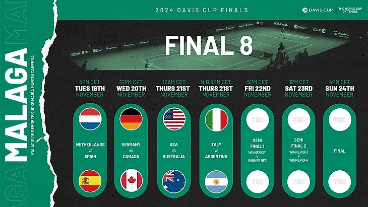Уже сегодня состоится первый четвертьфинал турнира – хозяева сыграют с голландцами. Капитан гостей дерзко пообещал организовать для Рафы красивое «adios». А Ботик ван де Зандсхулп недавно сенсационно обыграл Карлоса Алькараса на US Open.