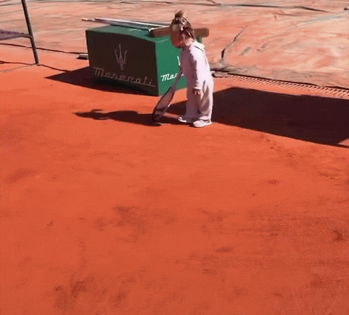 Вот она помогает отцу во время тренировки и наслаждается грунтом.