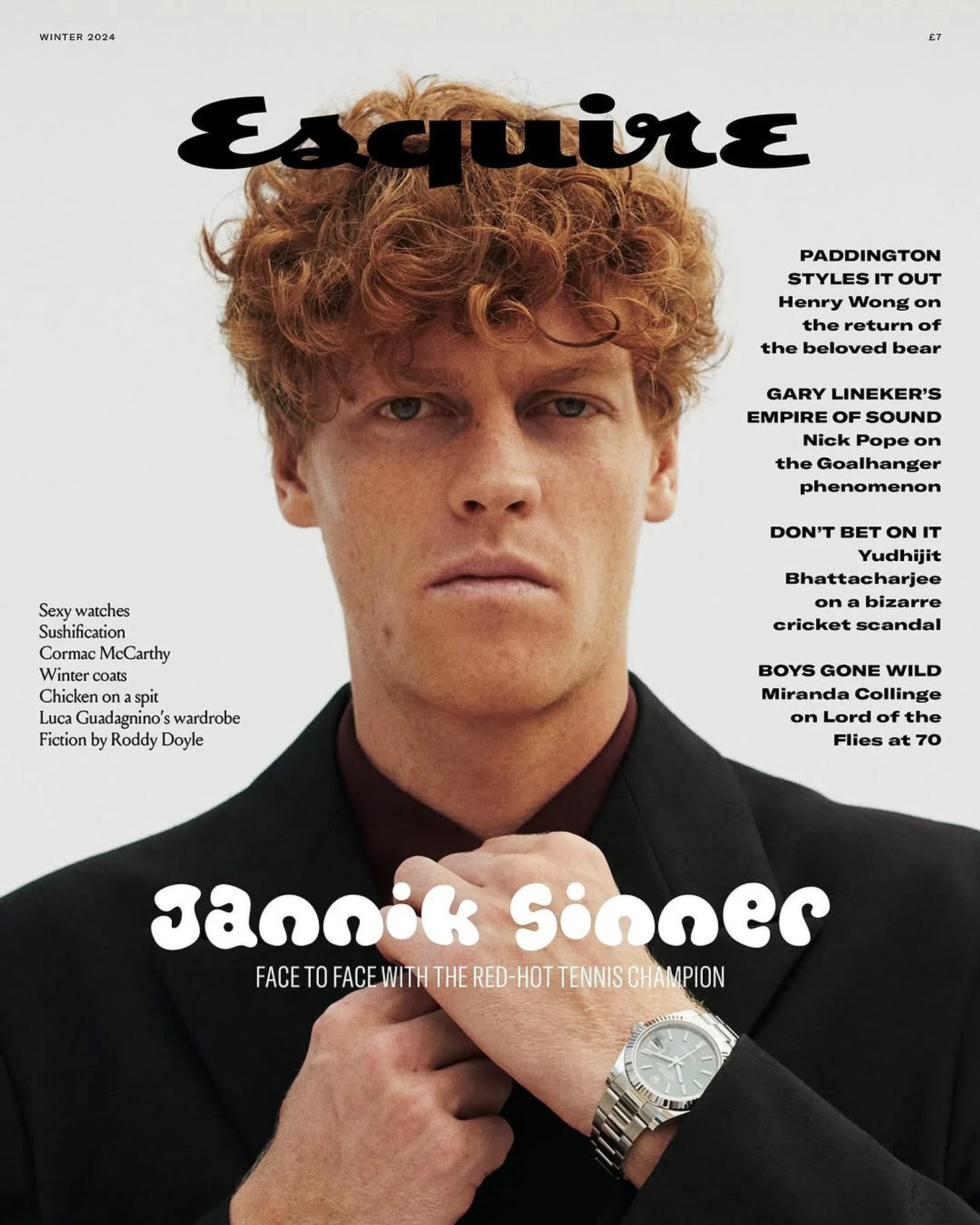 Бойфренд Калинской действующий чемпион Australian Open Янник Синнер чуть раньше начал чес по разным изданиям Esquire (на самом деле везде использована одна синдицированная съемка, причем очень скучная: Янник исключительно в тотал-луках своего спонсора Gucci и спонсорских же Rolex).