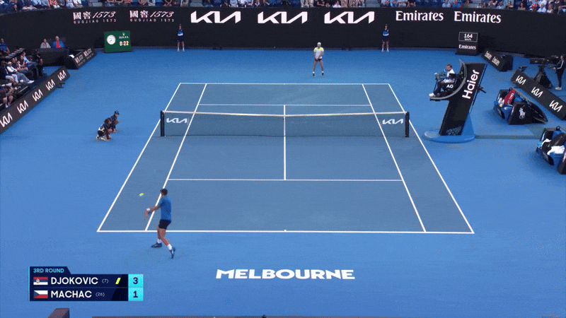 И временами демонстрировал отличную оборону. Например, тут он дважды подряд пробивал из почти что шпагата и в итоге выжал из Джоковича ошибку.