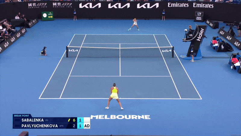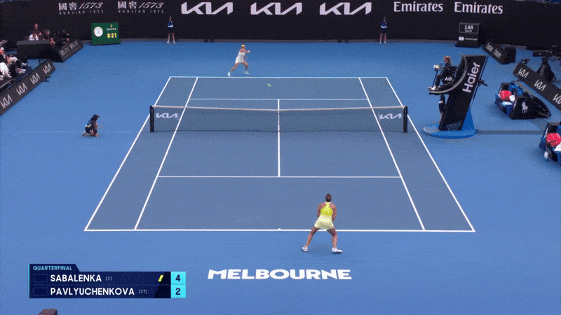 2. Павлюченкова стала бить сильнее. Показывали статистику – в первом сете средняя скорость ее форхенда составляла 113 км/ч, а во втором – уже 121 км/ч. У Соболенко обратная картина – 121 км/ч превратились в 112.