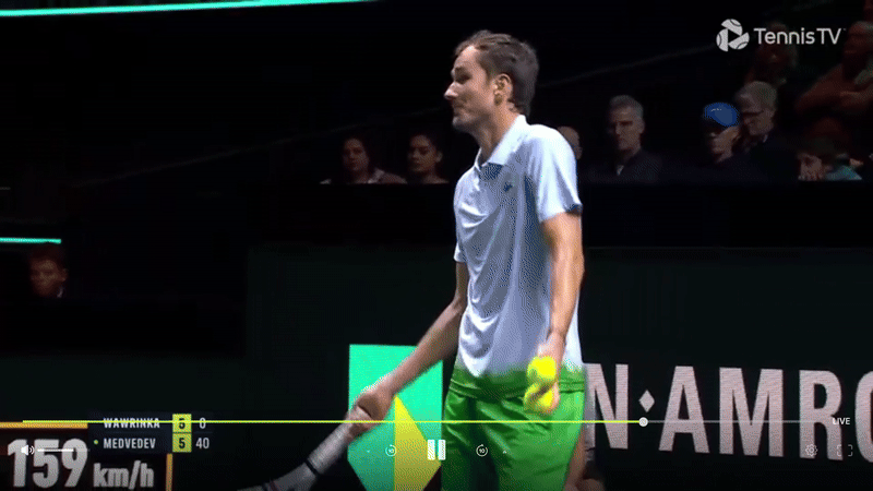 При счете 5:5 Медведев взял подачу под ноль, но не без приключений. Ведя 40:0, Даниил, который вообще-то славится быстрой игрой и умением подавать вообще без пауз, получил предупреждение за затяжку времени. За несколько секунд до объявления судьи он сказал тому: «Она не давала мячи, у меня не было мячей». Речь шла о болдевочке в его углу.