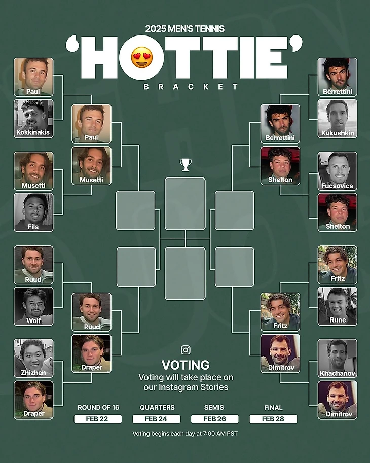 Сейчас активно идет голосование за выход в полуфинал. В числе претендентов: Каспер Рууд и Джек Дрейпер, Лоренцо Музетти и Томми Пол, Маттео Берреттини и Бен Шелтон, Тейлор Фриц и Григор Димитров.