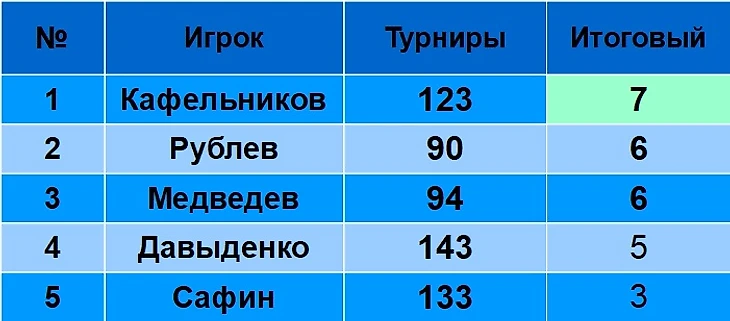 Под «большими турнирами» я беру Шлемы, Мастерсы, Итоговые и Олимпиаду.