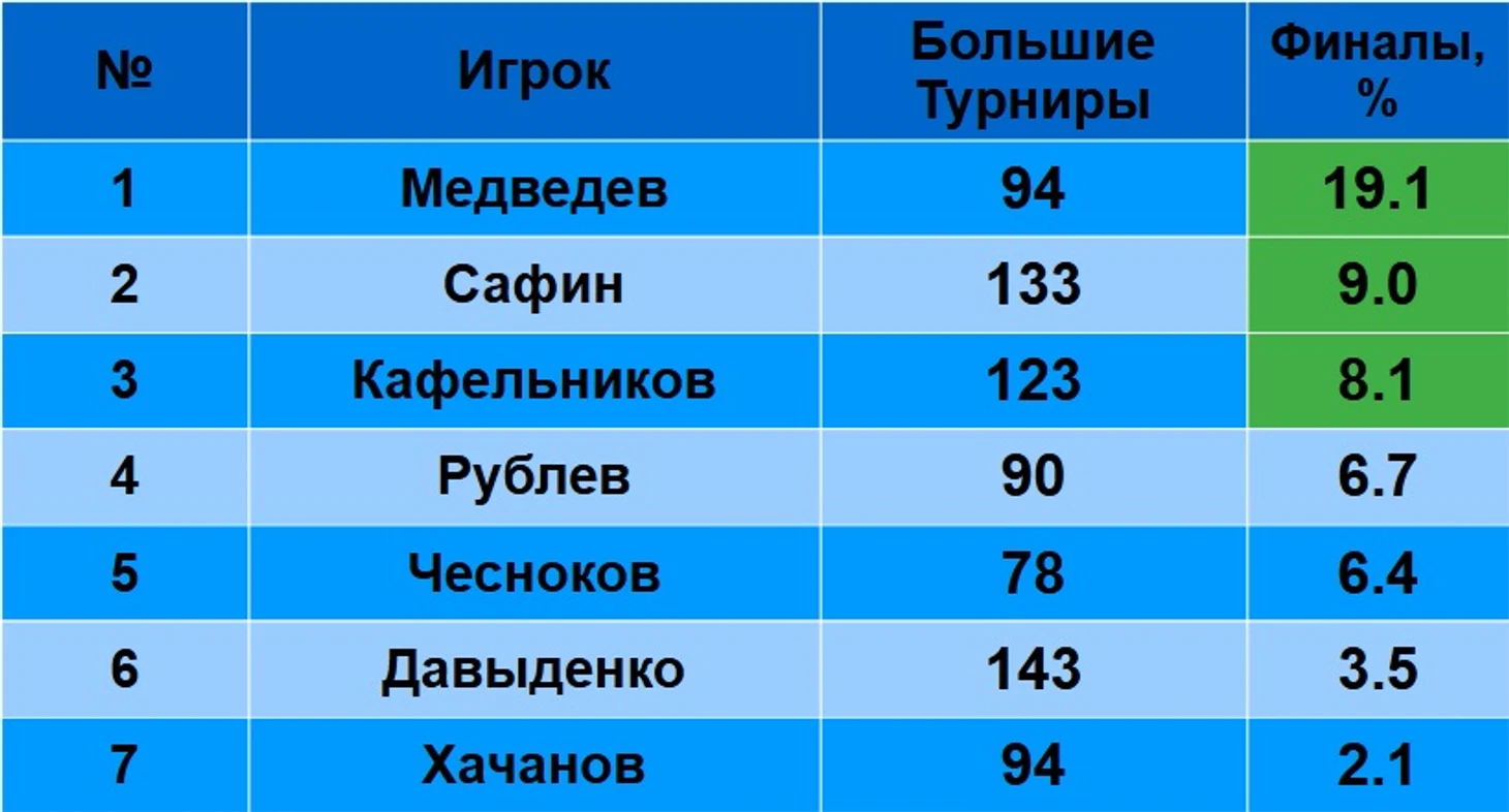 Большие турниры: статистика российских игроков по выходам в последние стадии