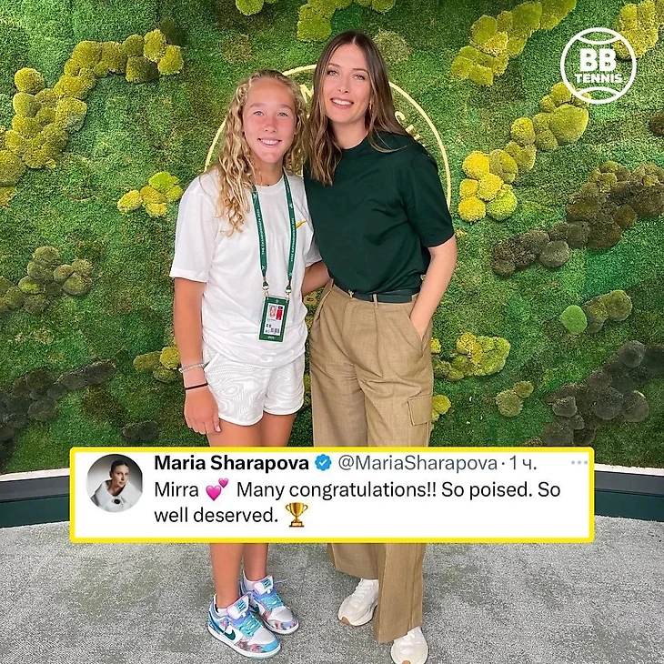 «Мирра 💕. Мои поздравления!! Такая собранная. Такая заслуженная победа🏆», – написала Шарапова в твиттере.