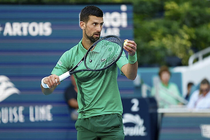 Великий серб впервые с 2019-го выступает в Майами и начал мощно – 6:0, 7:6(1) против Ринки Хиджикаты.