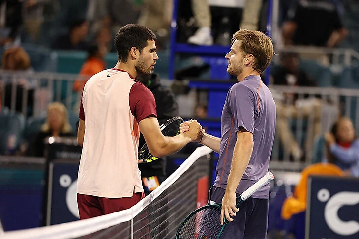 Чемпион-2022 взял и проиграл 34-летнему Давиду Гоффену – 7:5, 4:6, 3:6.