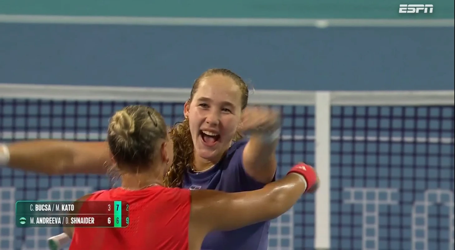 Вчера вечером в Майями Мирра Андреева и Диана Шнайдер взяли трофей в парном турнире WTA-100. Для 17-летней Мирры и 20-летненй Дианы это уже третья совместная награда: начале года они выиграли WTA-500 в Брисбене, а в прошлом сезоне взяли серебро на Олимпиаде в Париже.