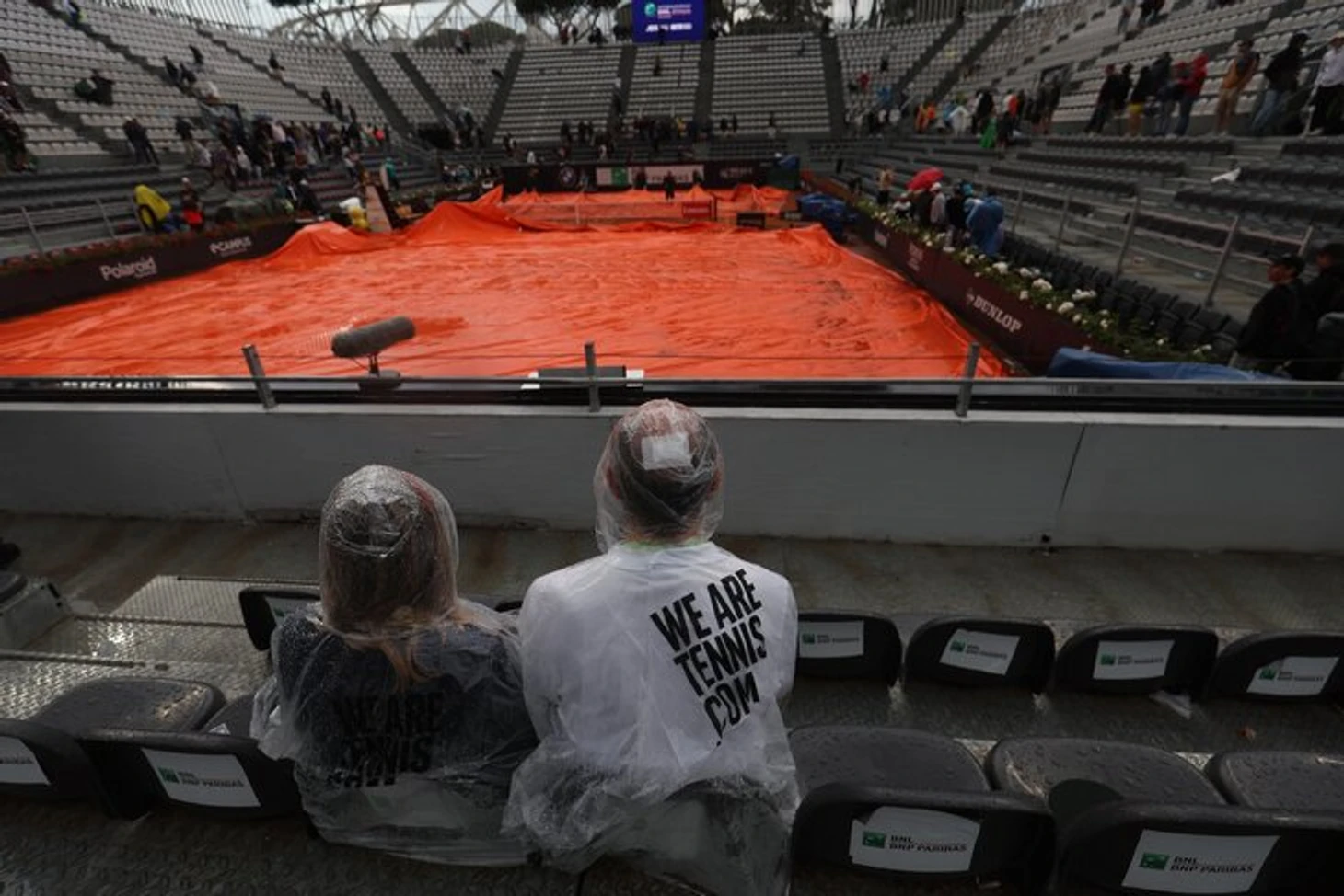 Потому что на корте уже были лужи, а на трибунах зрители суетились в попытках укрыться.