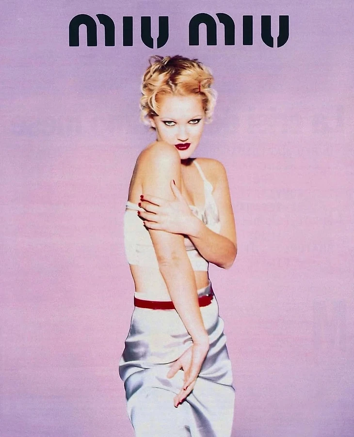 В следующем году Miu Miu получили первое селебрити-лицо. Им стала 20-летняя актриса Дрю Бэрримор, к тому времени уже получившая известность ролями трудных подростков и обнаженными журнальными фотосессиями (ее крестный отец Стивен Спилберг на 20-летие подарил ей стеганое одеяло из отредактированных снимков Playboy, где ей добавили одежду, с запиской «Прикройся»).