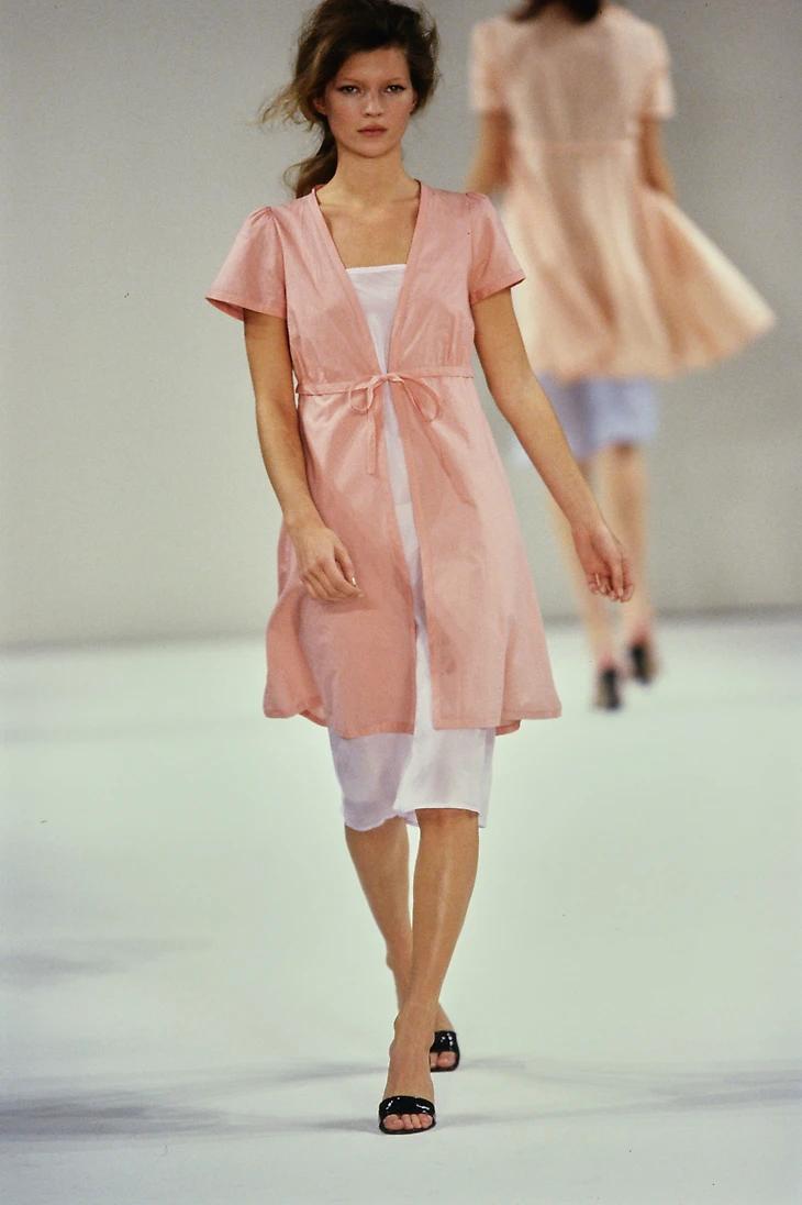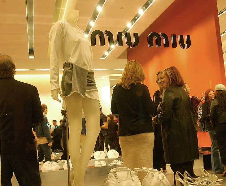 В том же 1993-м в Милане открылся первый магазин Miu Miu, а в следующем году марка дебютировала на неделе моды, но не там, а в более хипповом Нью-Йорке (позднее показывались во всех модных столицах и последние годы стоят в календаре Парижа). В первом подиумном показе Miu Miu участвовали будущие легенды Кейт Мосс и Стелла Теннант. Они и другие модели с минимальным макияжем и небрежными, будто растрепанными, волосами выходили в как бы детских полупрозрачных платьях и расстегнутых блузках, под которыми было видно контрастное белье, в разных комбинациях белого, черного, красного и пастельных цветов. По меркам XXI века это очень спокойная и даже романтичная коллекция, но для середины 1990-х это был довольно вызывающий эстетический манифест.