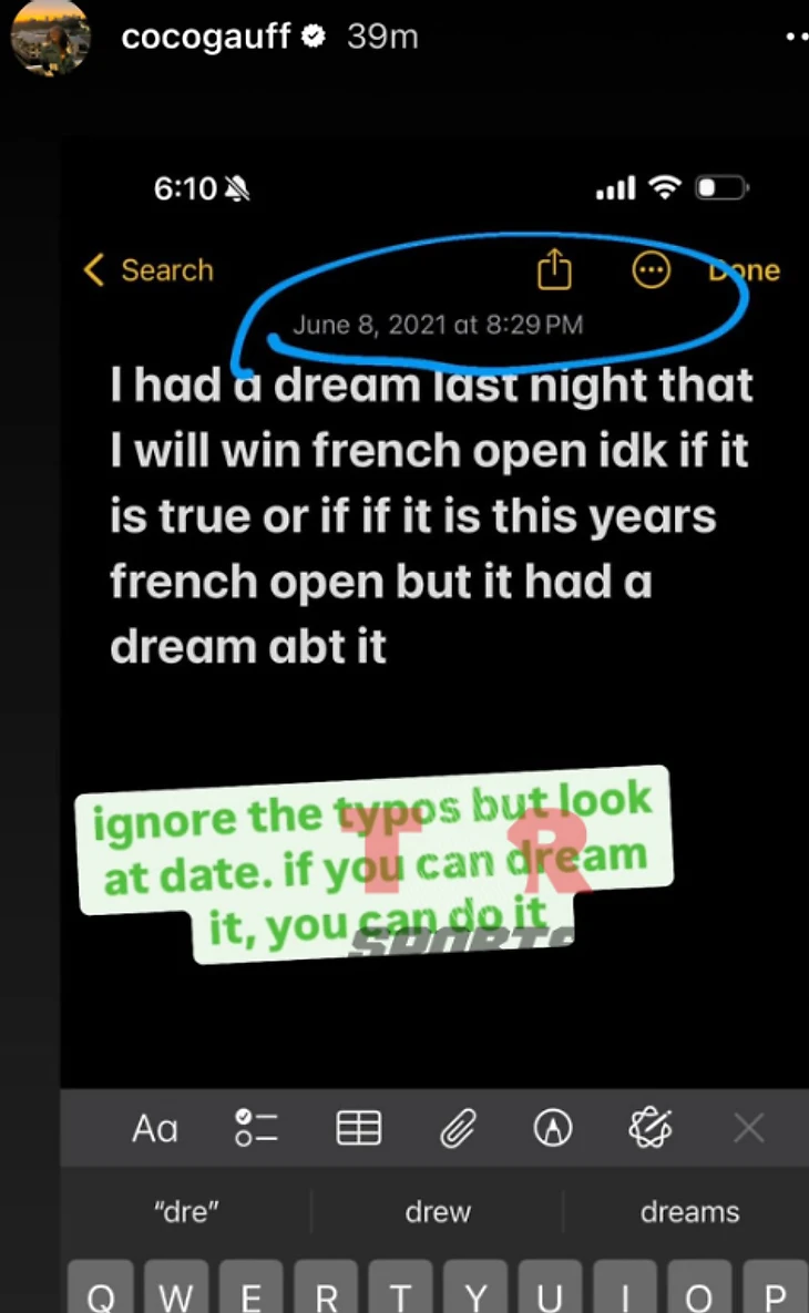 Гауфф знала, что выиграет «Ролан Гаррос» еще в 2021-м! Писала заметку в телефоне о победном сне 💖🔥