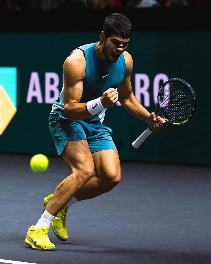 А еще атлетизм Алькараса очень фотогеничен. Его снимки с корта, кажется, чаще, чем у других игроков получаются динамичными и эстетичными (подборка будет обновляться).