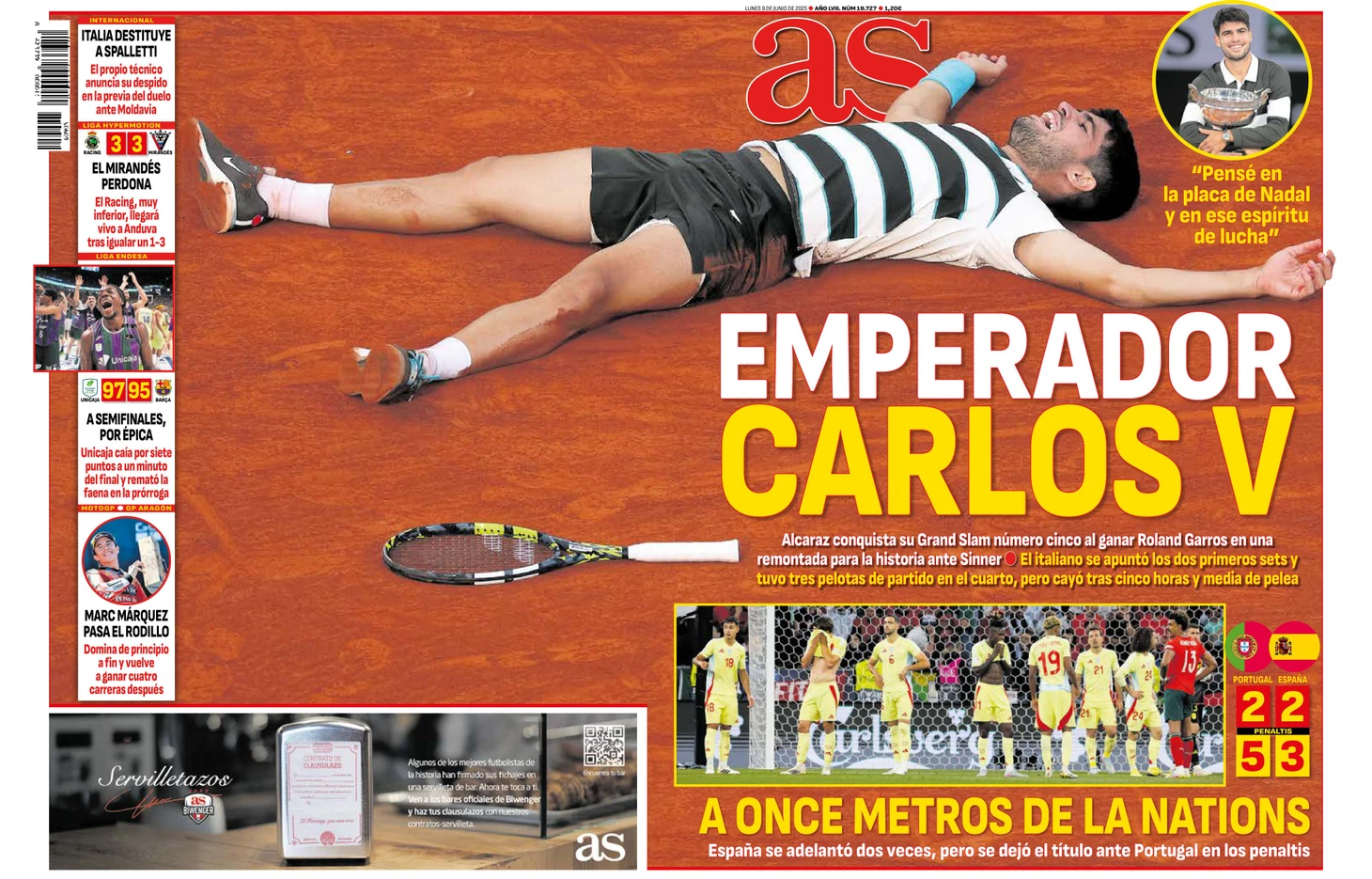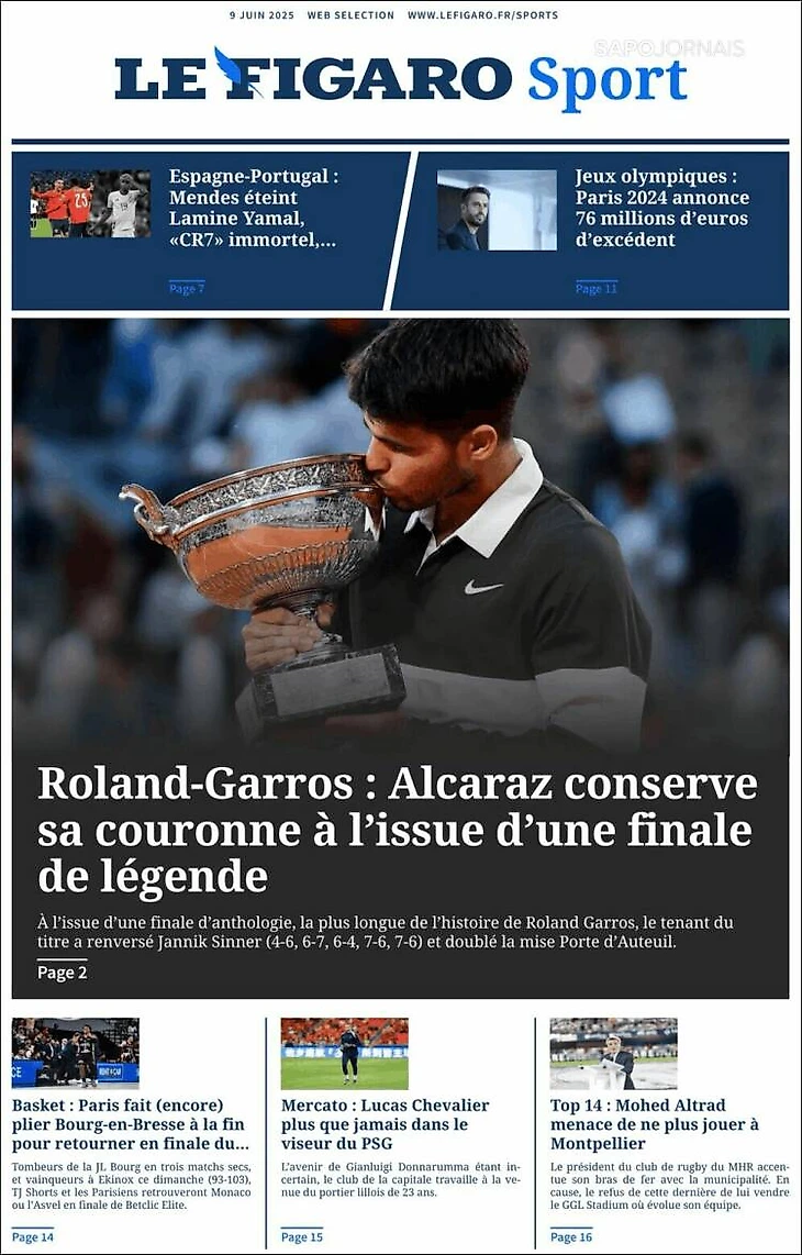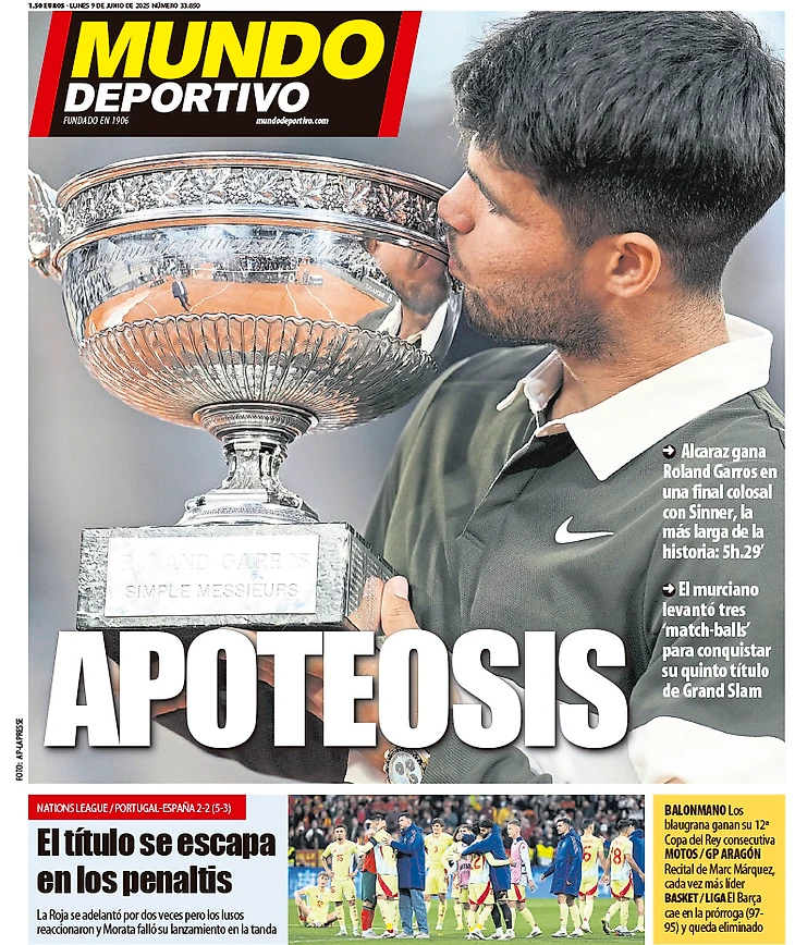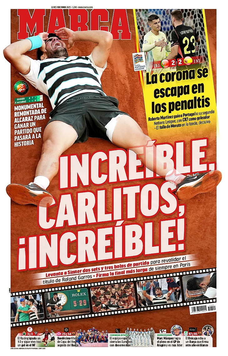 «Император Карлос V». Обложки европейских газет после финала «Ролан Гаррос»