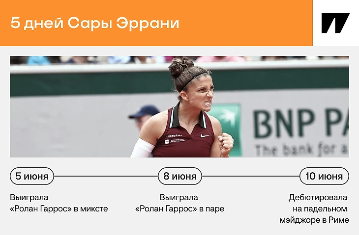 Безумный график Сары Эррани: позавчера выиграла «Ролан Гаррос», сегодня – уже на падел-мэйджоре
