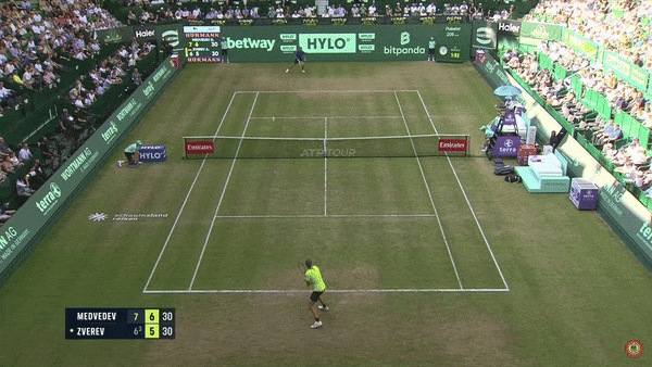● После того гейма Даниил уже как будто уверенно доводил матч до победы. Особых шансов на приеме у Зверева не было.