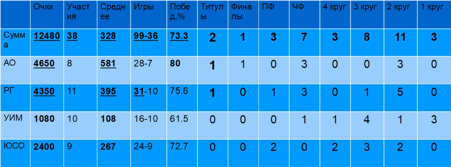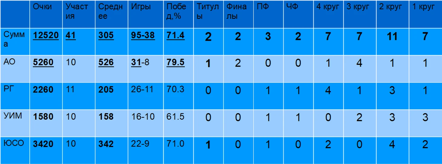Я решил пересчитать достижения российских топ-игроков уже по новой системе начисления очков.