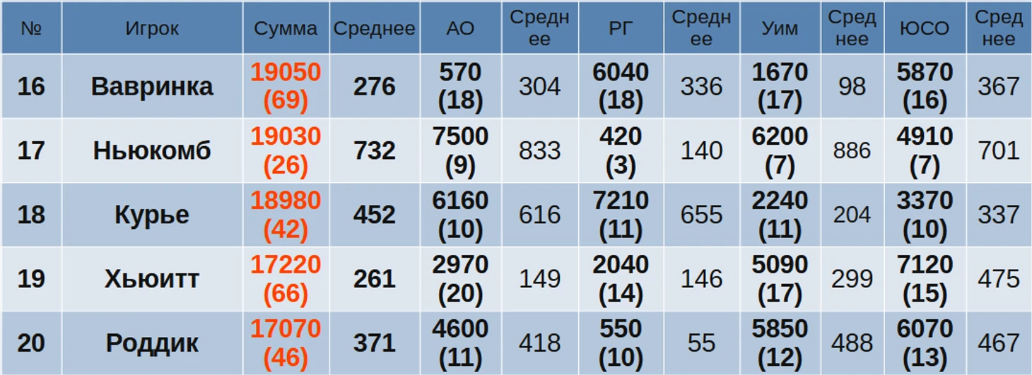 Спасибо за уточнение пользователю «Павел_1116679604». Тут на усмотрение читающих, можете учитывать его в раскладах, как нашего, можете не учитывать. В данном случае, не принципиально, рекордов он не ставил)) Я и сам пока не решил, стоит ли его упоминать в следующих статьях.