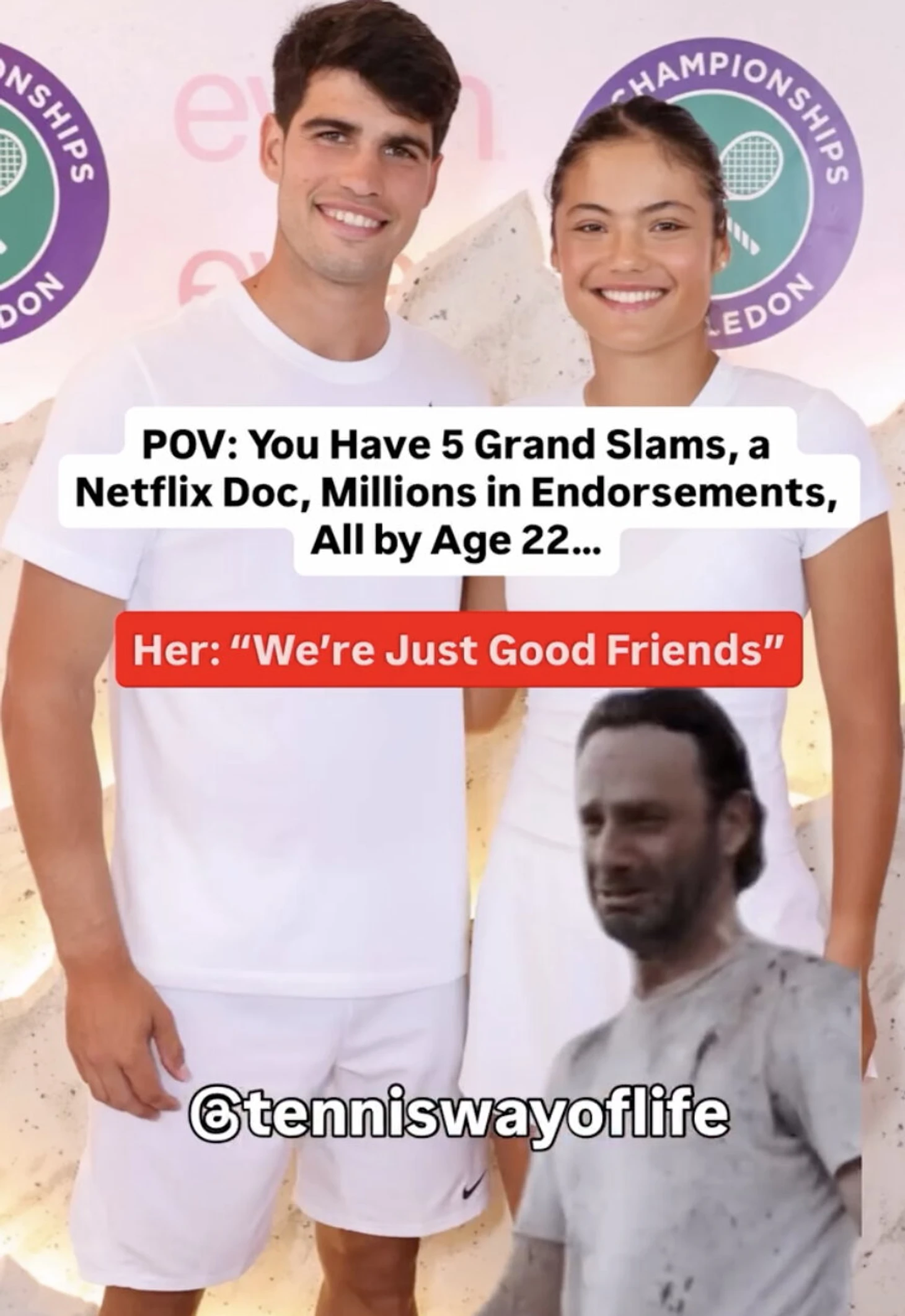 На следующий день на предуимблдонской пресс-конференции Радукану спросили, есть ли у слухов о романе какие-то основания. Она ответила: «Мы просто хорошие друзья», – а потом перепостила мем: