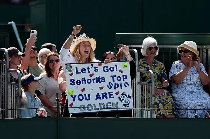 Мирра Андреева поддержала своего тренера Кончиту Мартинес, первую чемпионку «Уимблдона» из Испании – наставница россиянки сыграла выставочный микст в паре с бывшим британским №1 Грегом Руседски.