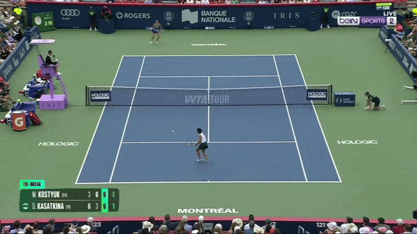 Касаткина помогла тем, что пробила не в пустой корт, а прямо в руке лежащей на корте Костюк.