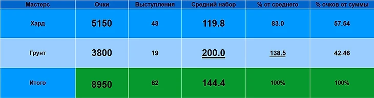 Остальные 4 Мастерса значительно скромнее по среднему набору очков.