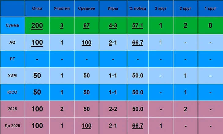 3 выхода из 4-х в 4 круг Екатерина осуществила в 2025-ом году.