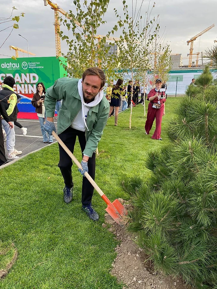 Медведев и Хачанов уже в Алматы: сажают деревья, дают мастер-классы и готовятся к старту турнира