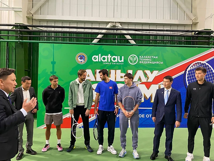 Российские теннисисты Карен Хачанов и Даниил Медведев уже прибыли в Казахстан и приняли участие в важном мероприятии — открытии нового теннисного центра «Алатау» в Алматы. К ним присоединились итальянец Флавио Коболли, а также казахстанские теннисисты — Бейбит Жукаев и Александр Шевченко